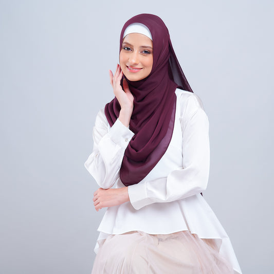 Pamper yourself with our LATEST BASIC CHIFFON SERIES for 2022, the Jasmine Shawl & Jasmine Square.Feel comfortable for long hours wearing this soft, airy and easy to wear fabric. The perfect material to wear on a hot and humid day in Malaysia.