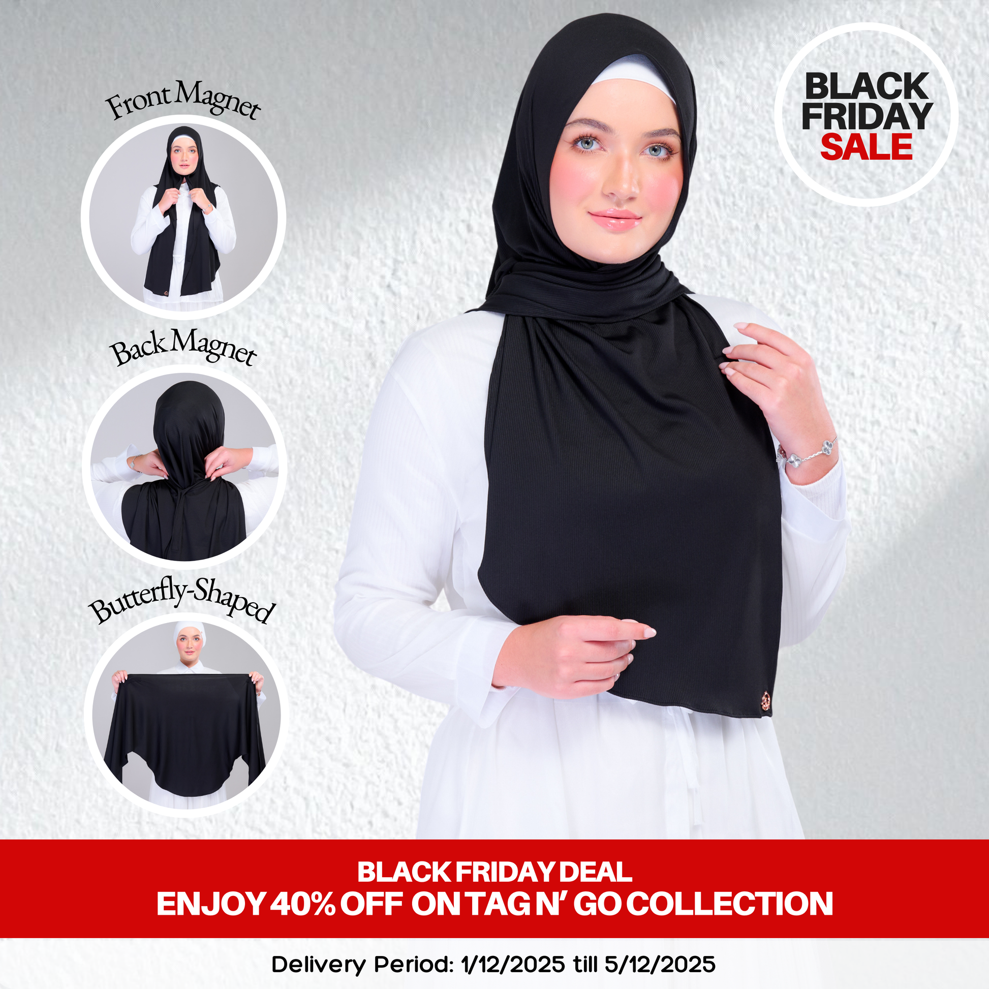 #GoPinless. Save your time for something better and Get Ready in Seconds with our Tag n' Go Collection. Introducing our new favourite Stretchable Ribbed Jersey but better! Both Pairs of Magnets are adjustable to your face and body size for Full Coverage Styling.