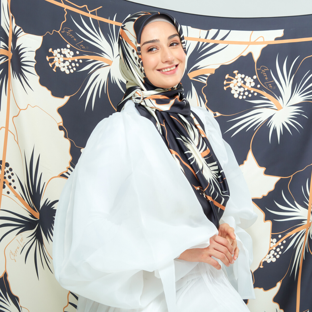 Poise your Raya with Shera Lee all new Printed Square collection! Euphoria in Grace is painted on a stretchable Satin Crepe that are tender, luscious and flows elegantly, creating beautiful and sophisticated drapes. Featuring bold and intricate designs which combines abstract and flower motifs, it is definitely the perfect accessory for this year's Raya. Spoil yourself with choices of 7 other designs under this collection.