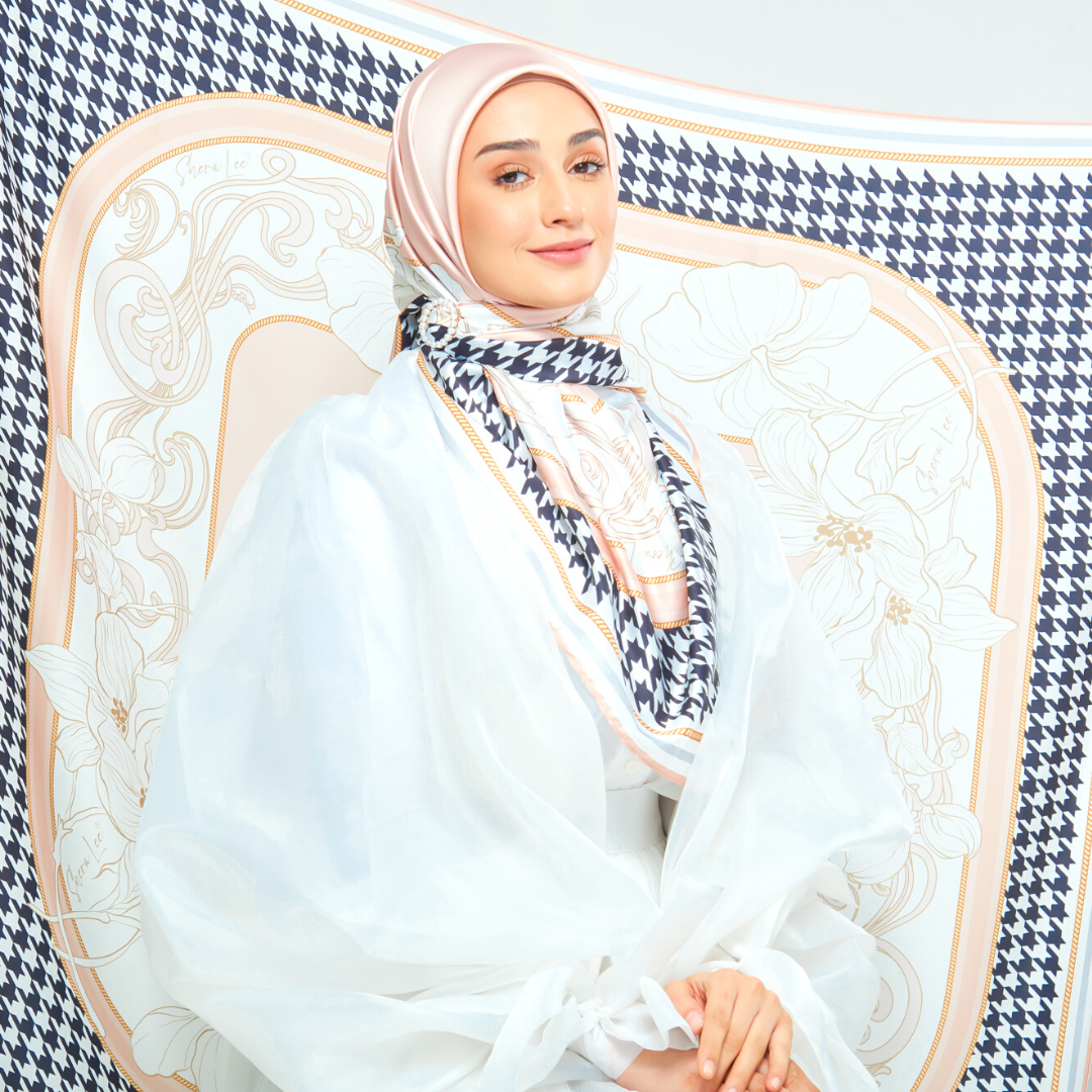Poise your Raya with Shera Lee all new Printed Square collection! Euphoria in Posh is painted on a stretchable Satin Crepe that are tender, luscious and flows elegantly, creating beautiful and sophisticated drapes. Featuring bold and intricate designs which combines abstract and flower motifs, it is definitely the perfect accessory for this year's Raya.  Spoil yourself with choices of 7 other designs under this collection.