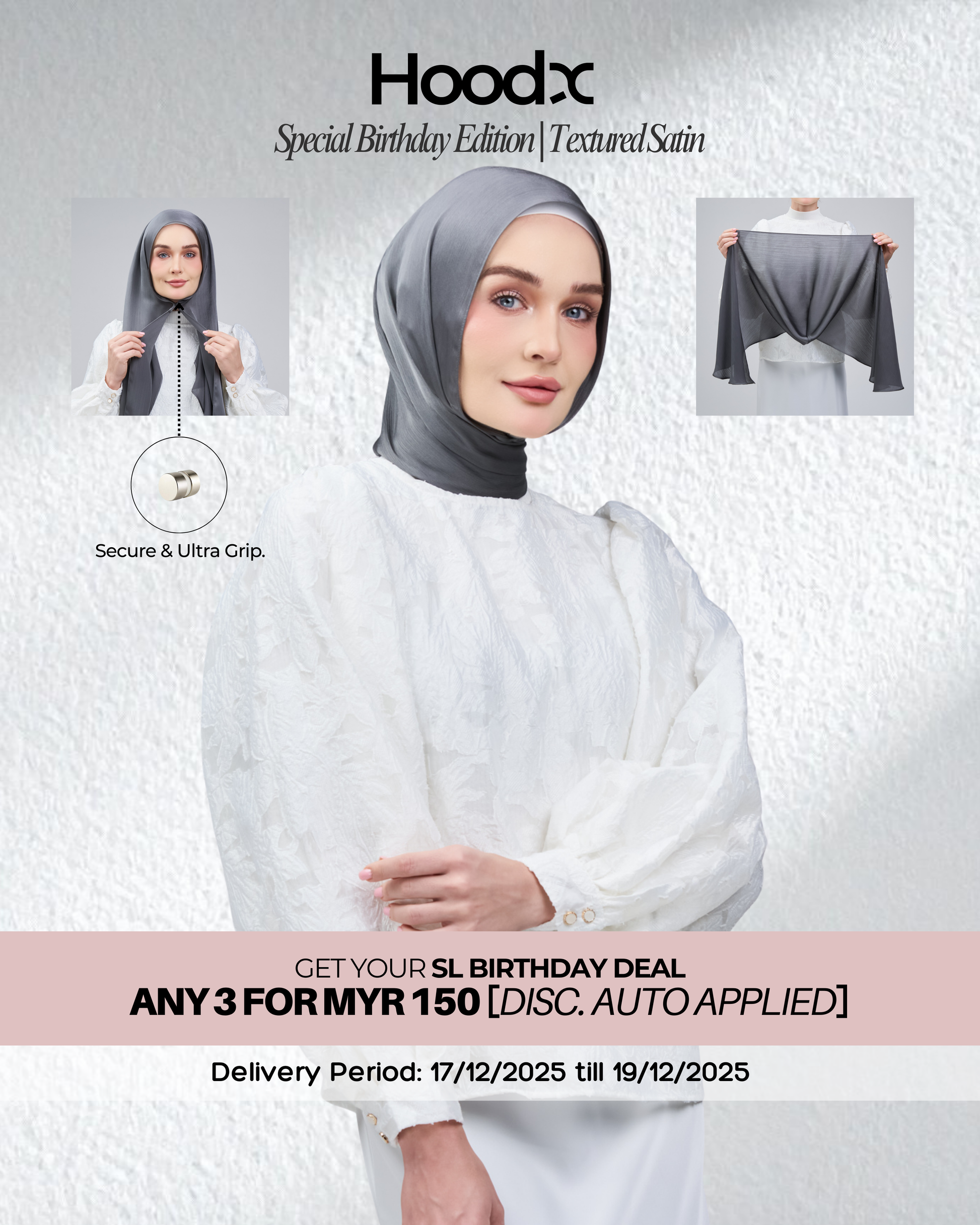 The HoodX Birthday Edition is a celebration of everything you’ve built. Boldness, softness, and the quiet confidence that follows you everywhere. Crafted with Textured Satin, the kind of satin that drapes elegantly on your neck.