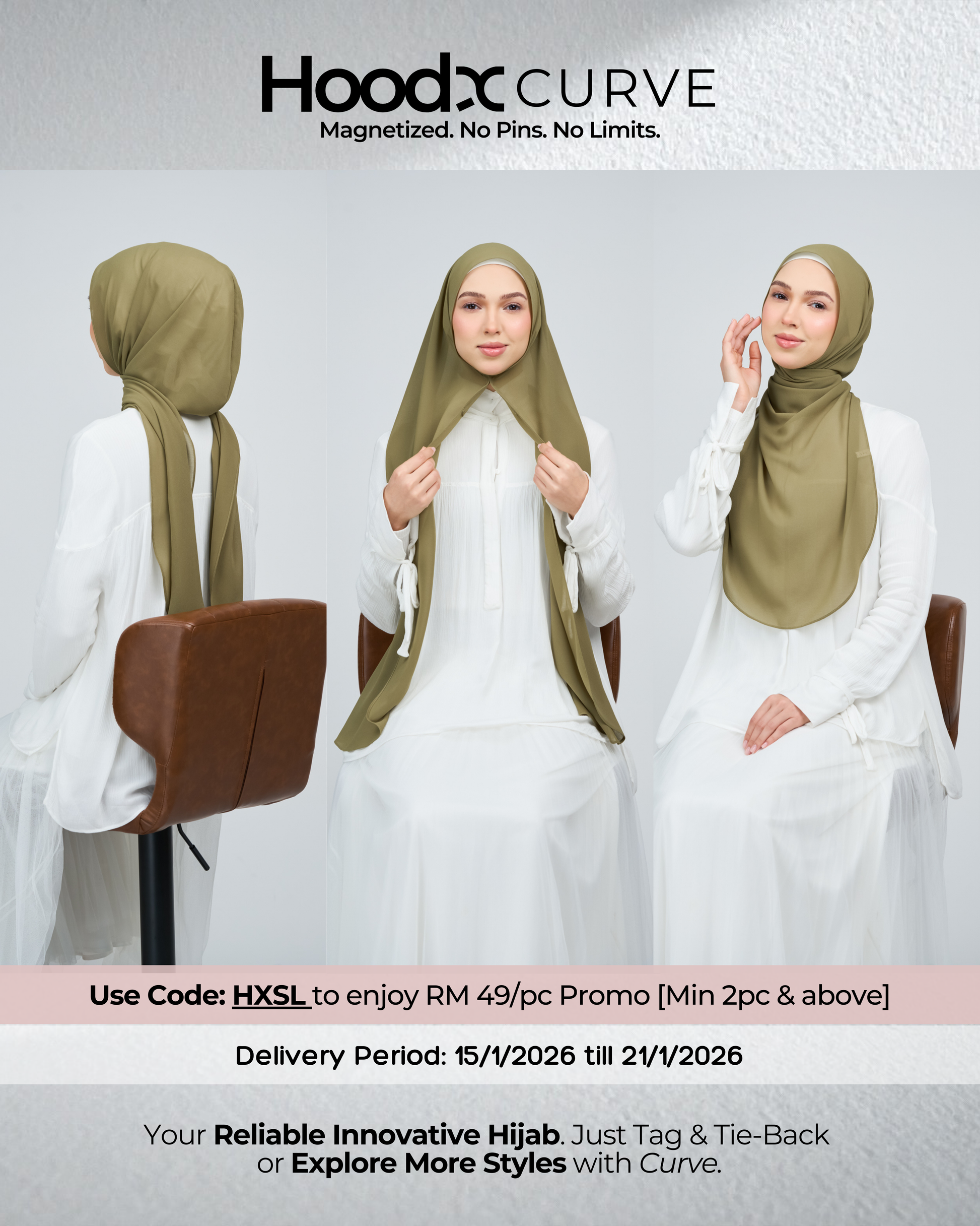 Introducing the HoodX Curve in our signature Pearl Chiffon — a naturally draped, face-framing silhouette made effortless. Crafted from our iconic lightweight chiffon, it features a soft curved front, an airy drape, and the signature HoodX comfort with a smoother feminine contour. Perfect for busy days, dinner dates, or anything in between, it delivers a polished look with minimal styling.