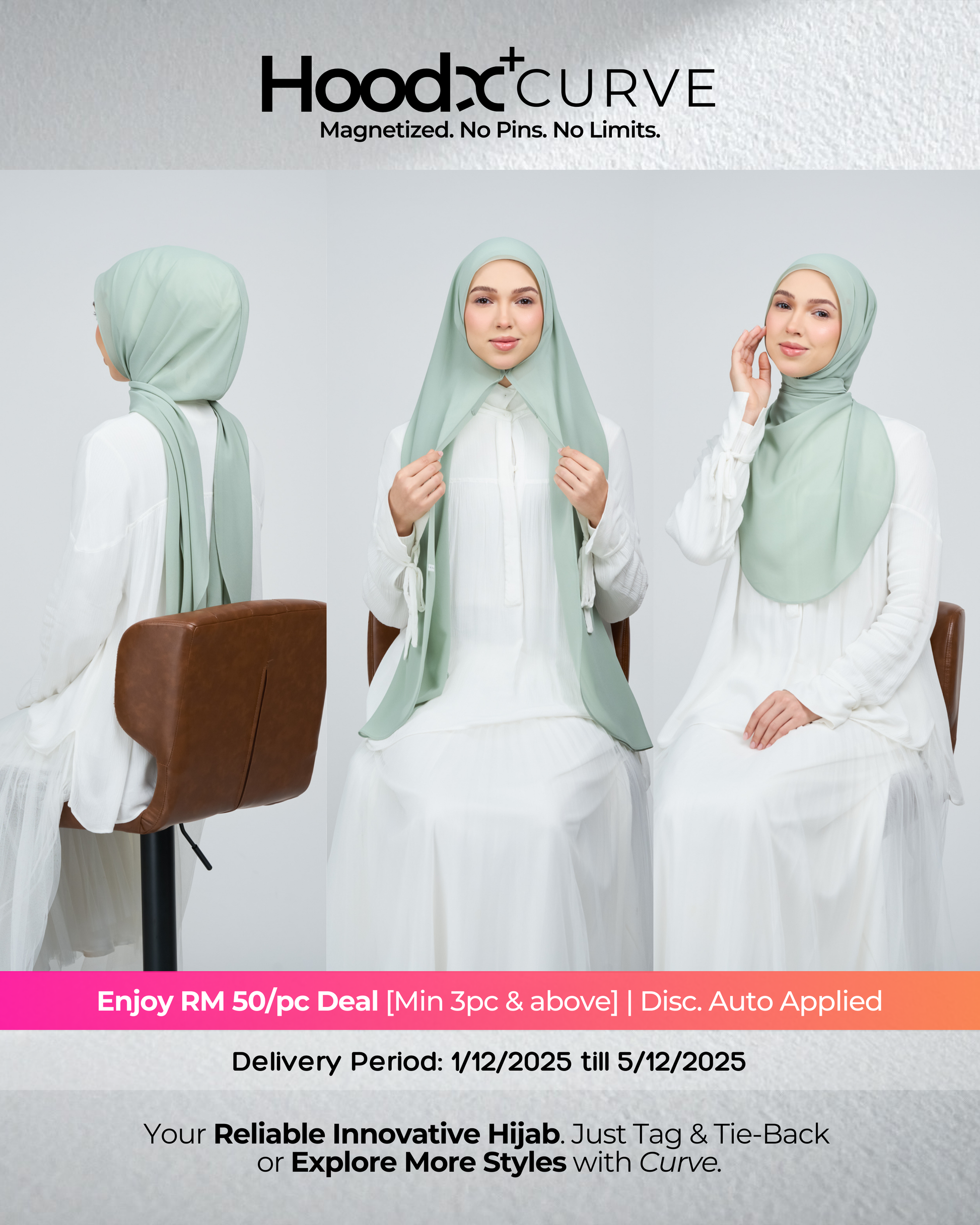 Introducing the HoodX Curve in our signature Pearl Chiffon — a naturally draped, face-framing silhouette made effortless. Crafted from our iconic lightweight chiffon, it features a soft curved front, an airy drape, and the signature HoodX comfort with a smoother feminine contour. Perfect for busy days, dinner dates, or anything in between, it delivers a polished look with minimal styling.