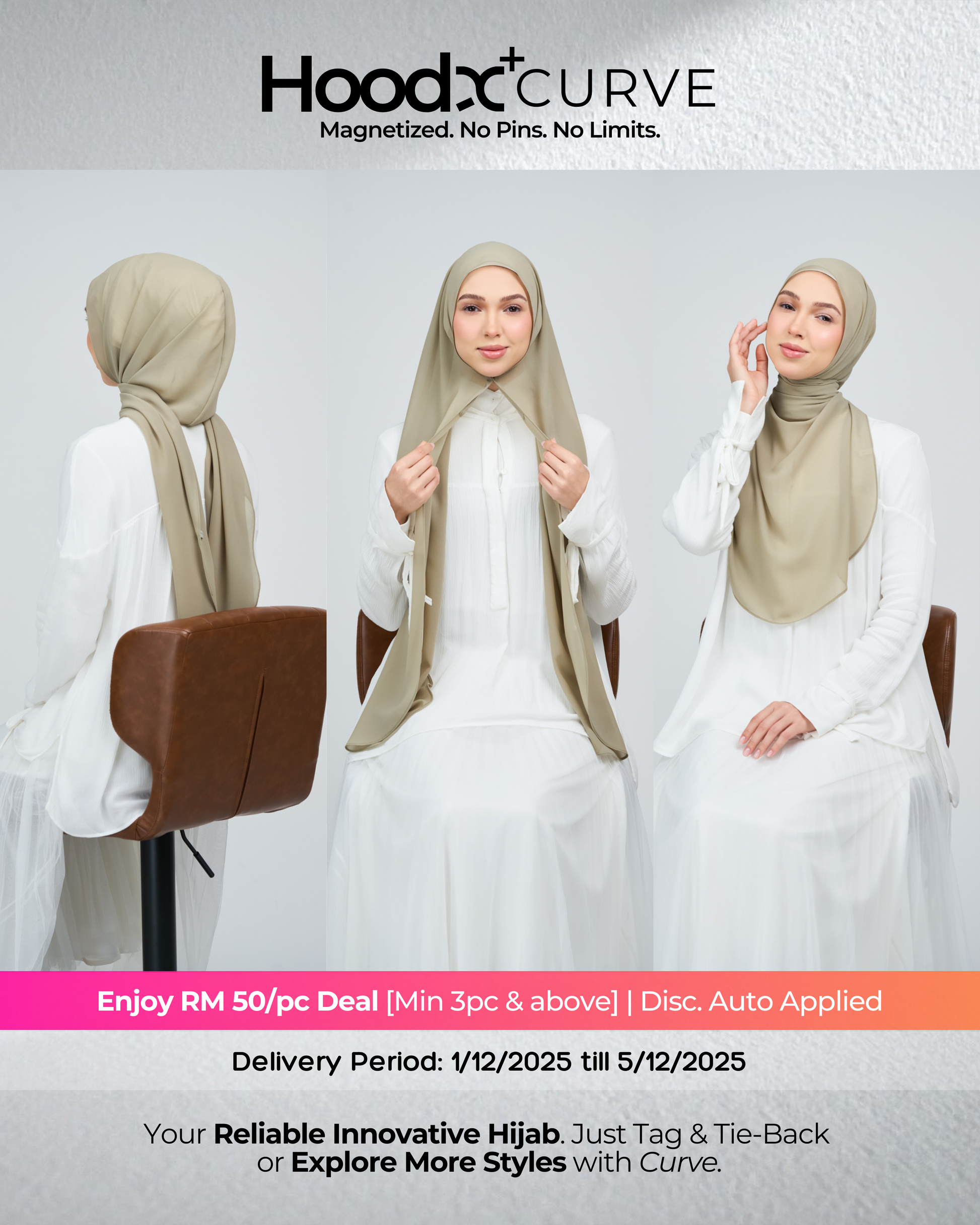 Introducing the HoodX Curve in our signature Pearl Chiffon — a naturally draped, face-framing silhouette made effortless. Crafted from our iconic lightweight chiffon, it features a soft curved front, an airy drape, and the signature HoodX comfort with a smoother feminine contour. Perfect for busy days, dinner dates, or anything in between, it delivers a polished look with minimal styling.