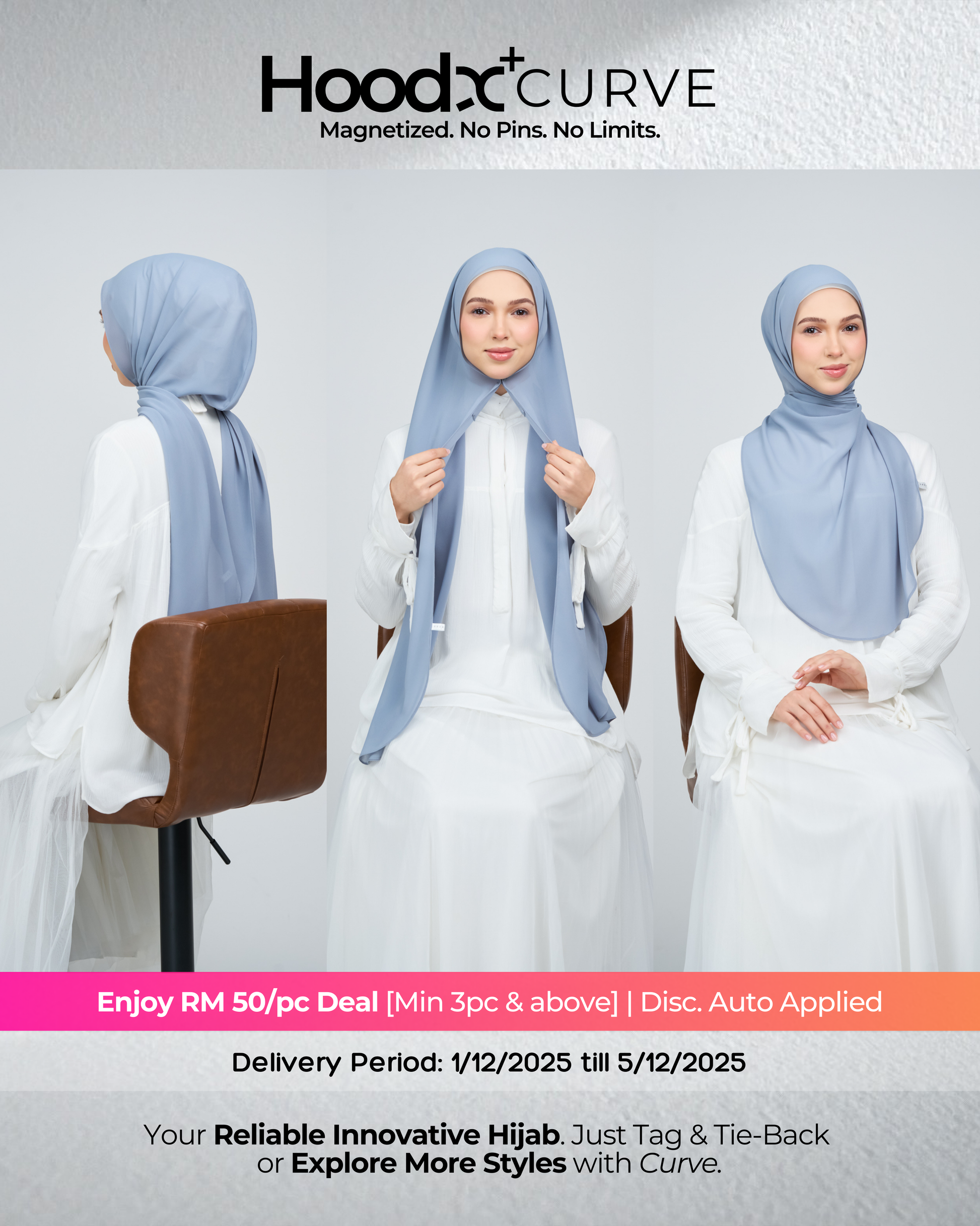 Introducing the HoodX Curve in our signature Pearl Chiffon — a naturally draped, face-framing silhouette made effortless. Crafted from our iconic lightweight chiffon, it features a soft curved front, an airy drape, and the signature HoodX comfort with a smoother feminine contour. Perfect for busy days, dinner dates, or anything in between, it delivers a polished look with minimal styling.