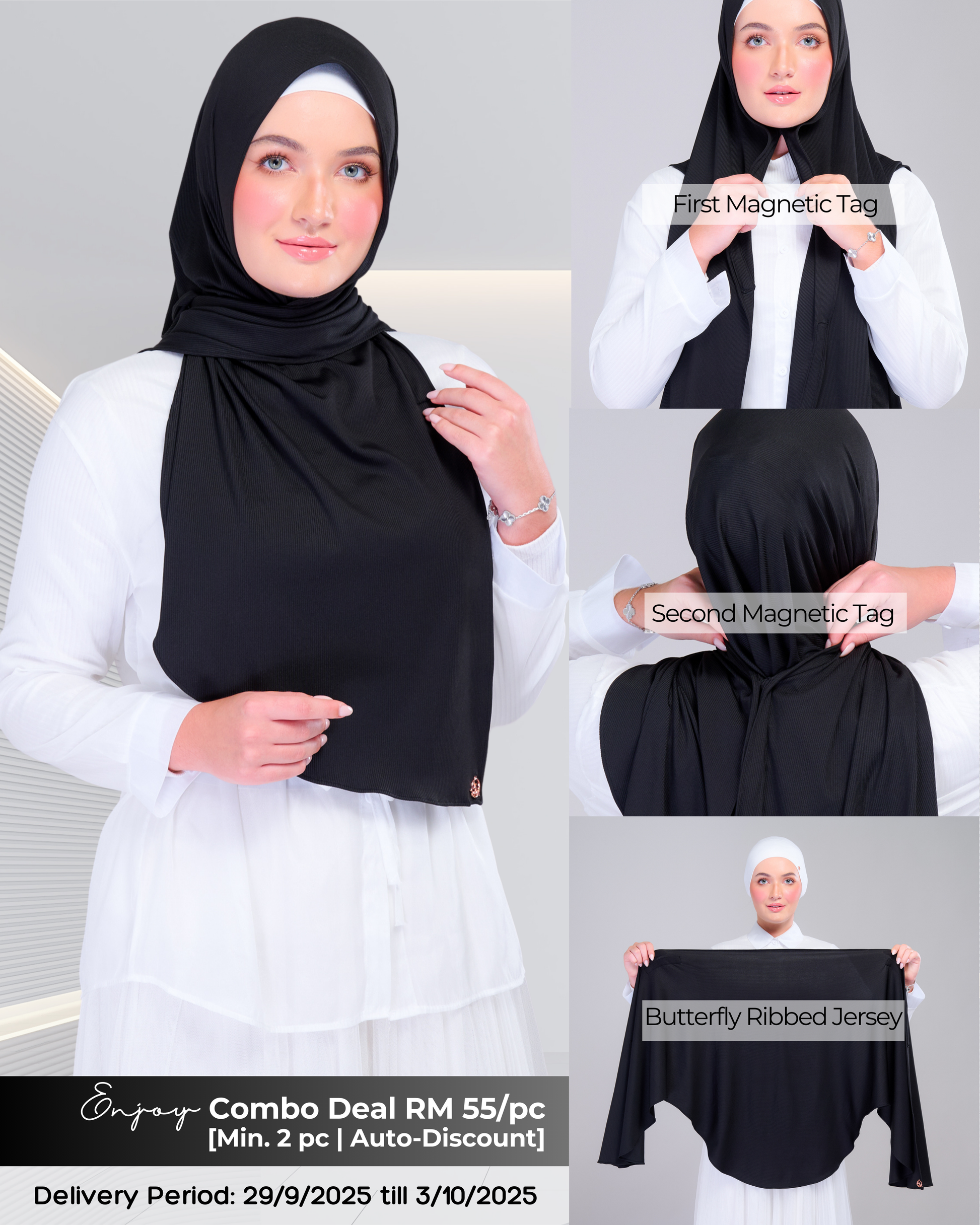 #GoPinless. Save your time for something better and Get Ready in Seconds with our Tag n' Go Collection. Introducing our new favourite Stretchable Ribbed Jersey but better! Both Pairs of Magnets are adjustable to your face and body size for Full Coverage Styling.