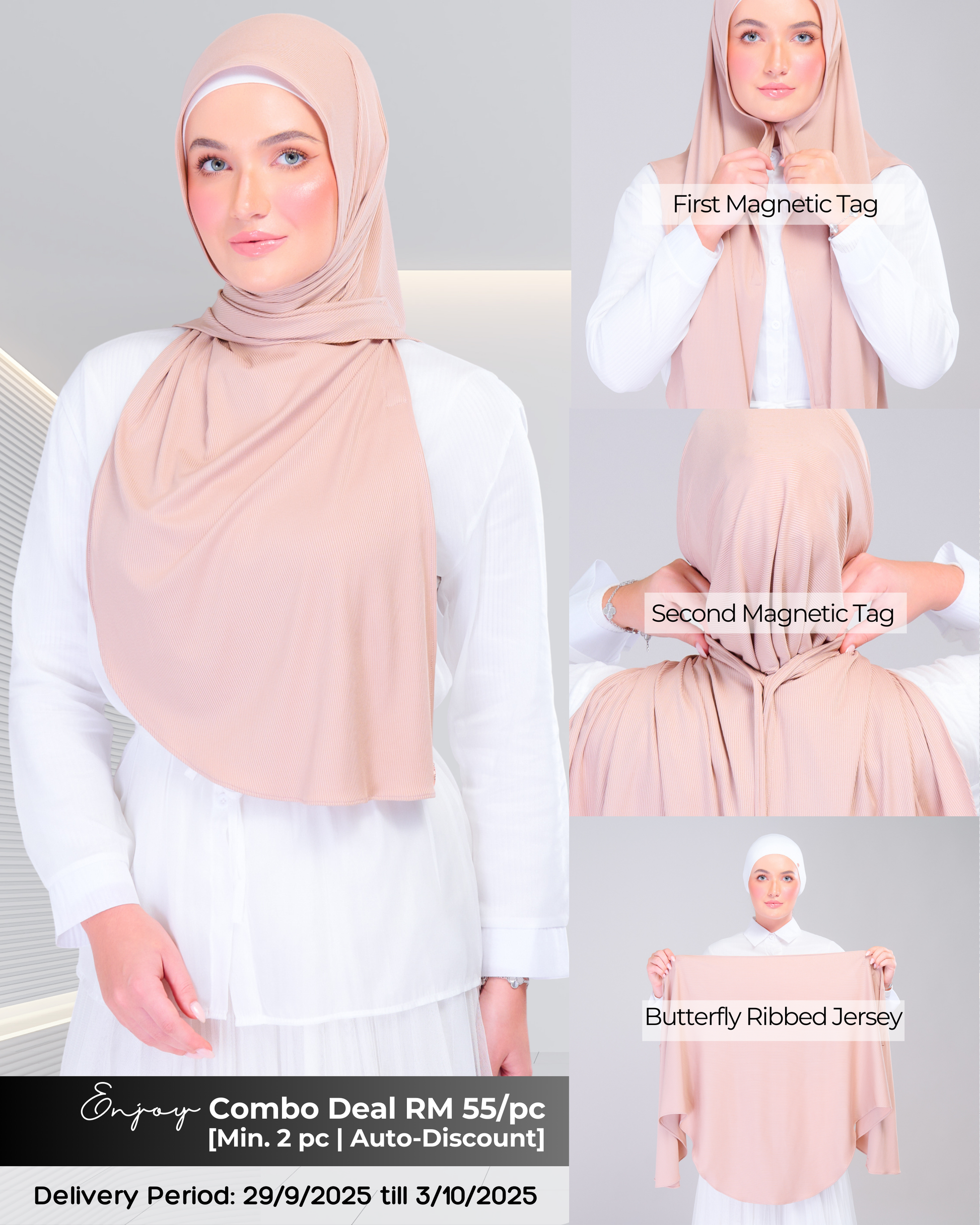 #GoPinless. Save your time for something better and Get Ready in Seconds with our Tag n' Go Collection. Introducing our new favourite Stretchable Ribbed Jersey but better! Both Pairs of Magnets are adjustable to your face and body size for Full Coverage Styling.