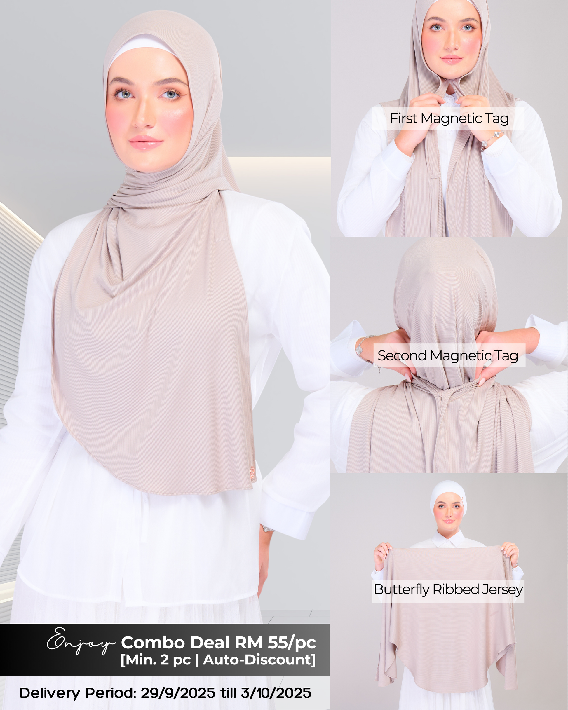 #GoPinless. Save your time for something better and Get Ready in Seconds with our Tag n' Go Collection. Introducing our new favourite Stretchable Ribbed Jersey but better! Both Pairs of Magnets are adjustable to your face and body size for Full Coverage Styling.