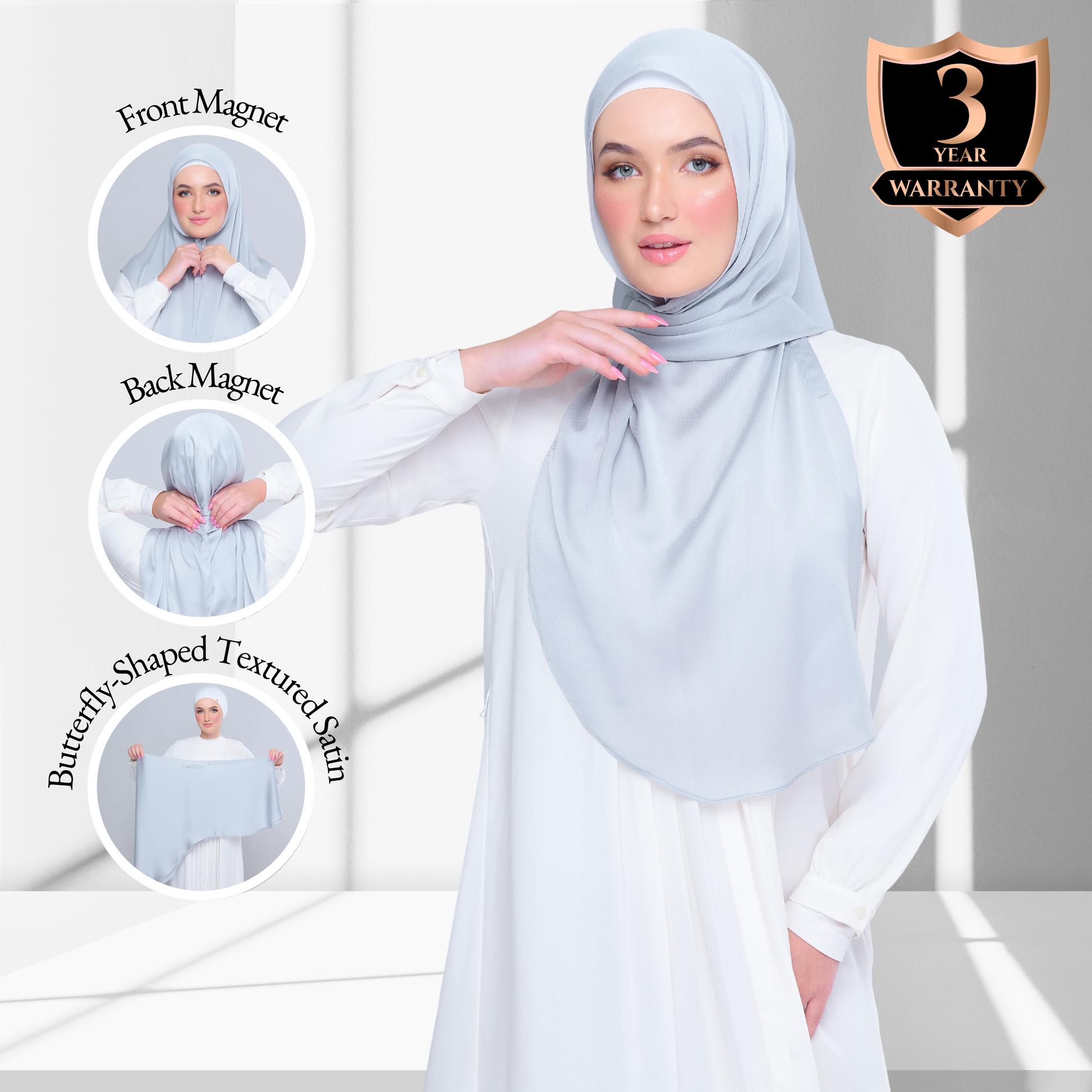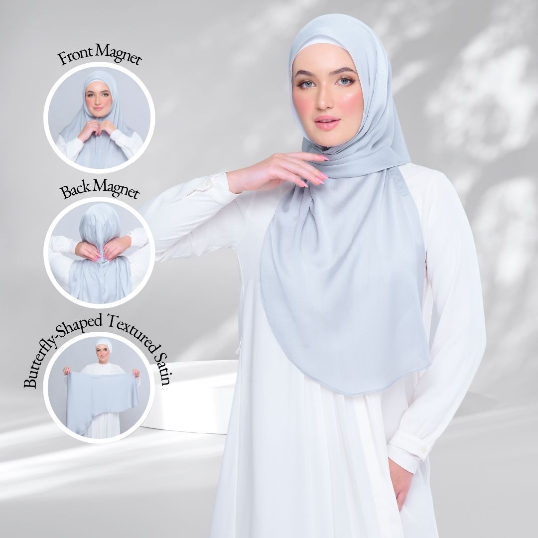 #GoPinless. Save your time for something better and Get Ready in Seconds with our Tag n' Go Collection. Your Favourite Textured Shawl but better! Both Pairs of Magnets are adjustable to your face and body size for Full Coverage Styling.