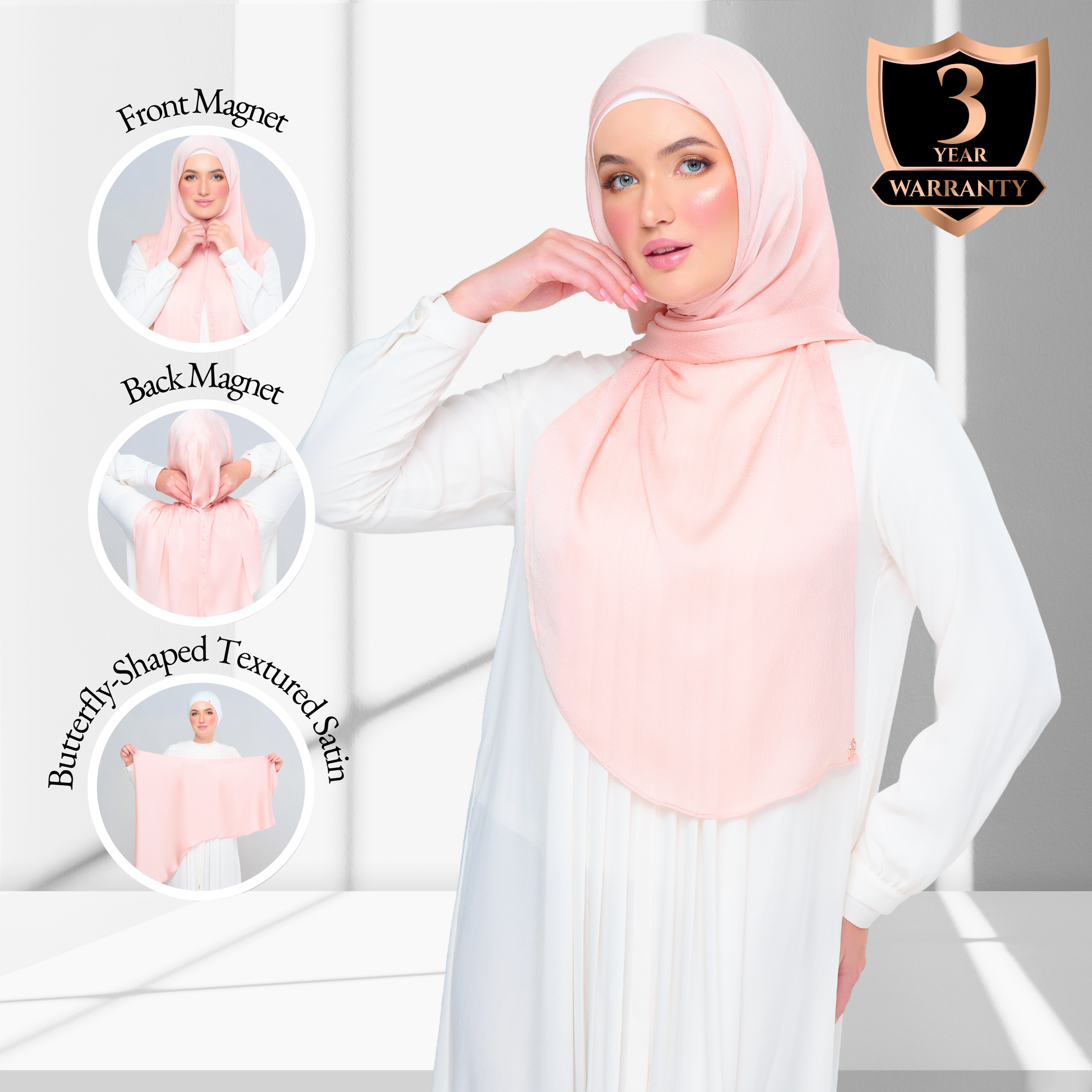 #GoPinless. Save your time for something better and Get Ready in Seconds with our Tag n' Go Collection. Your Favourite Textured Shawl but better! Both Pairs of Magnets are adjustable to your face and body size for Full Coverage Styling.
