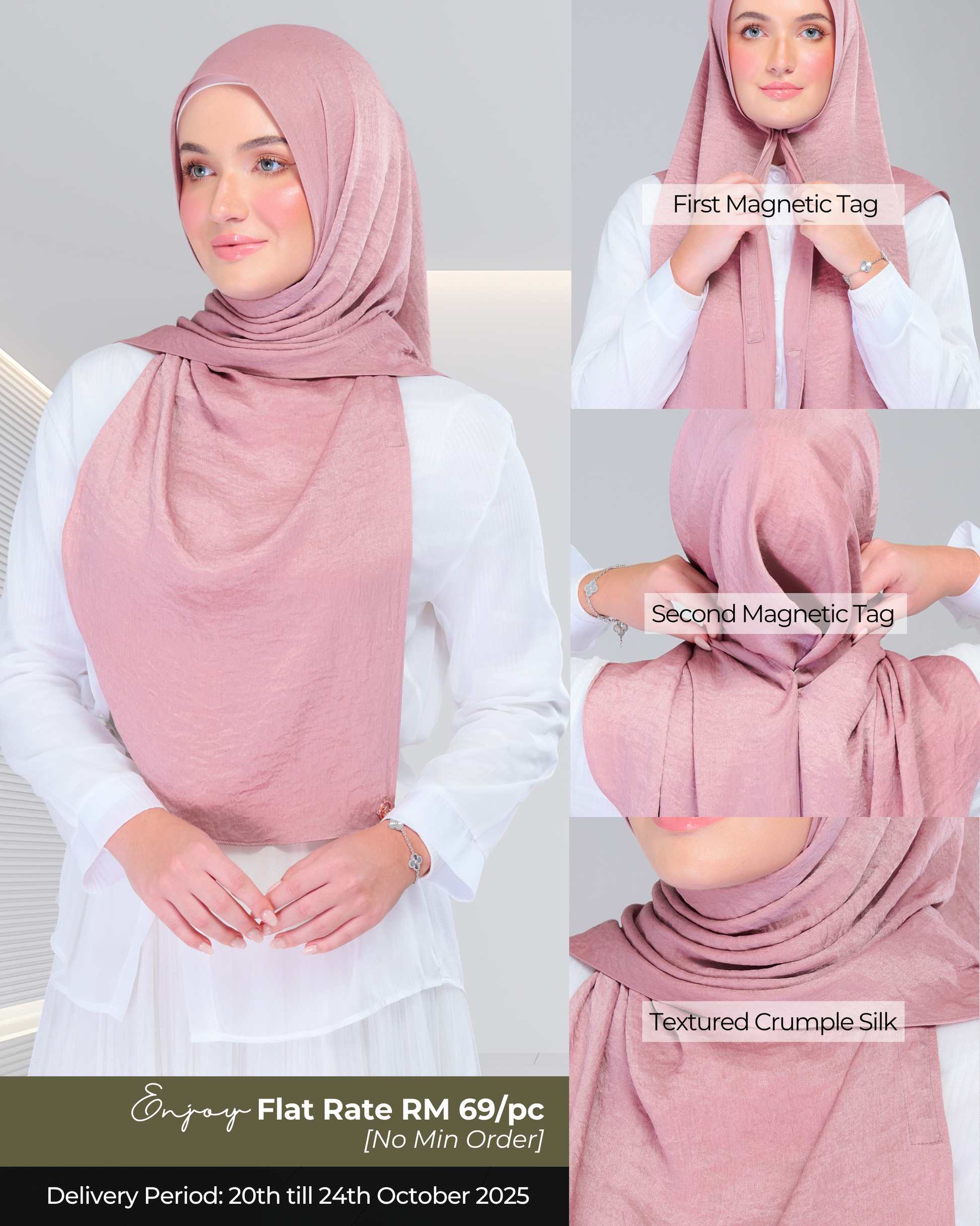Your Favourite Shawl but better! Both Pairs of Magnets are adjustable to your face and body size for Full Coverage Styling.