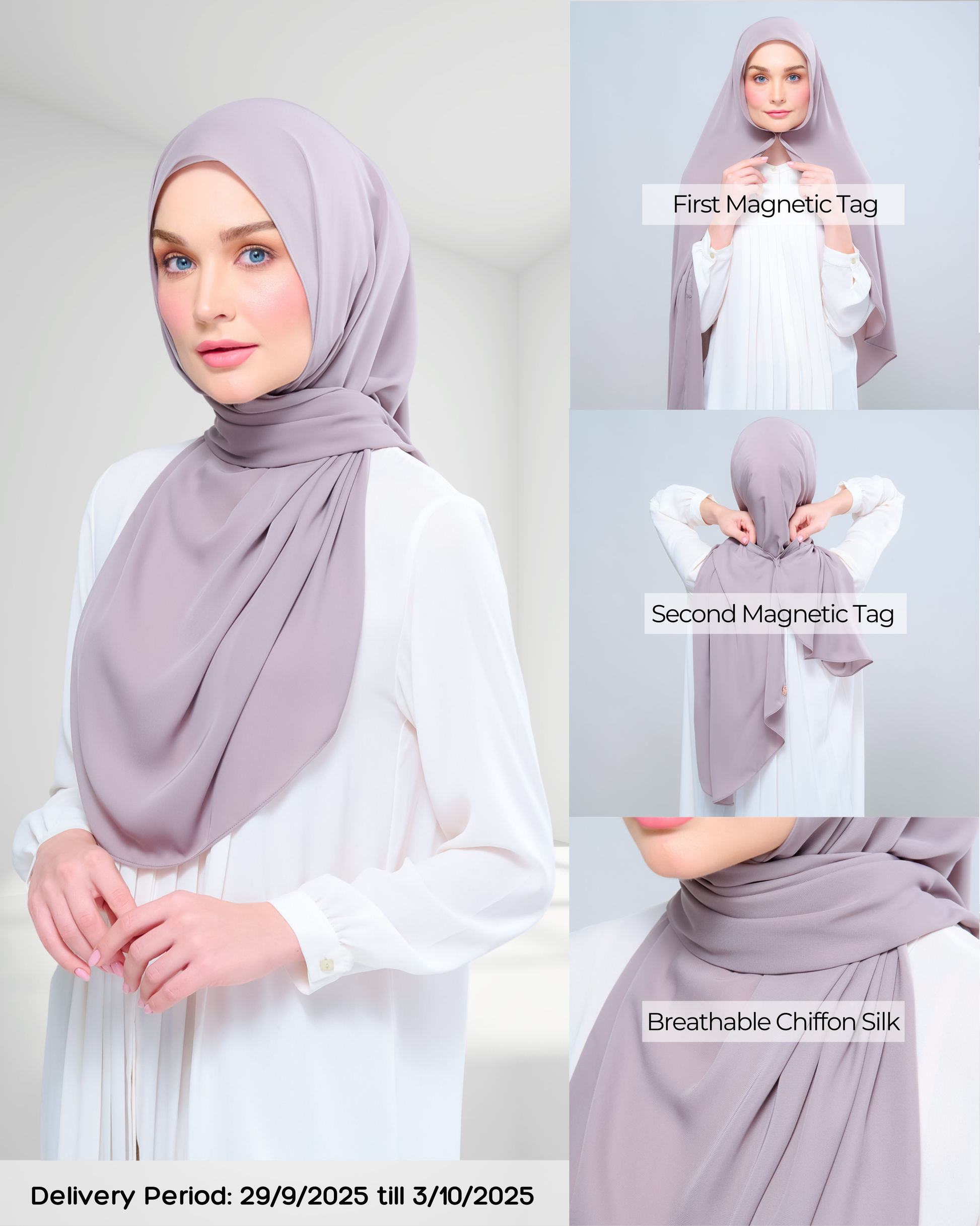 #GoPinless. Save your time for something better and Get Ready in Seconds with our Tag n' Go Collection. Your Favourite Shawl but better! Both Pairs of Magnets are adjustable to your face and body size for Full Coverage Styling.