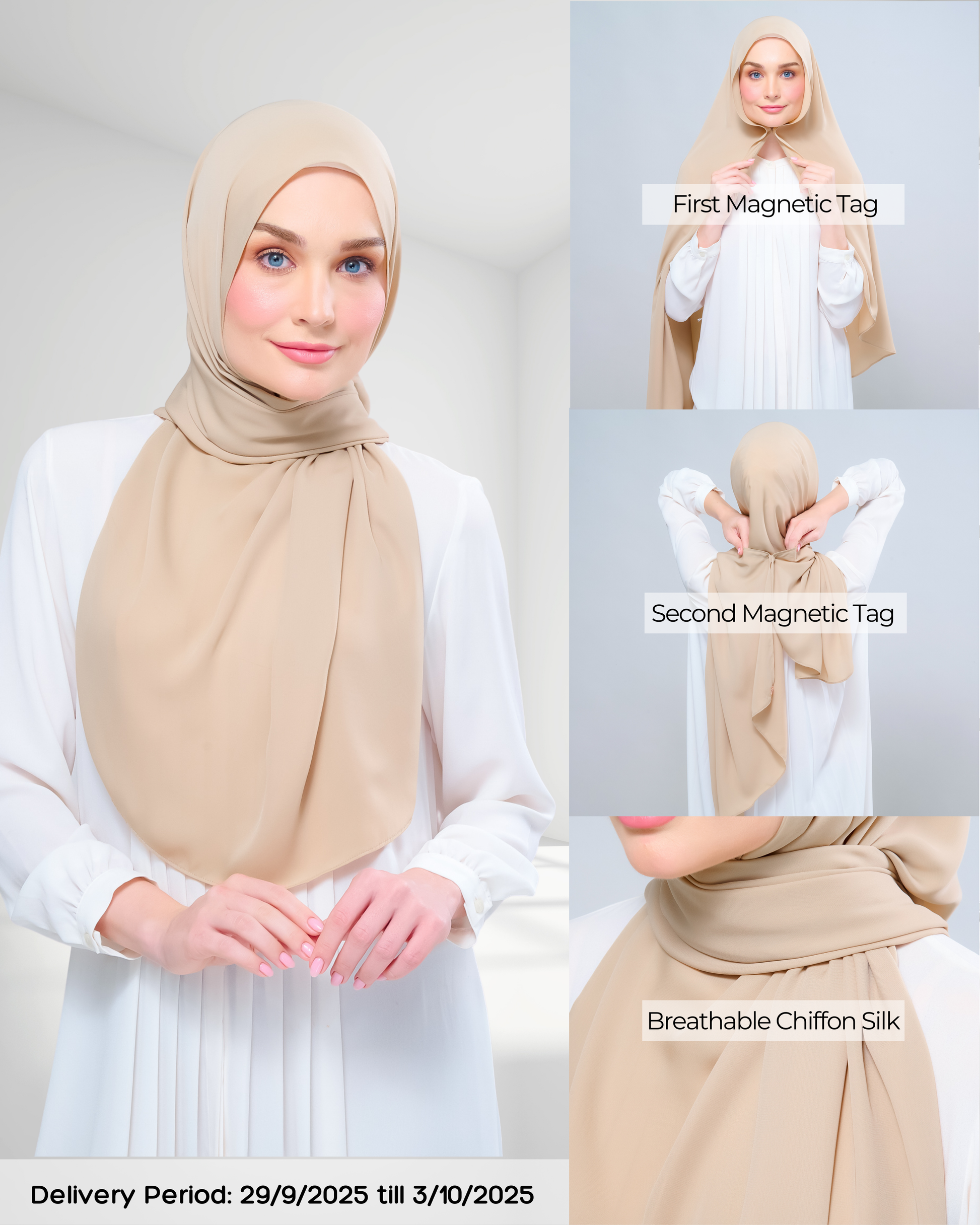 #GoPinless. Save your time for something better and Get Ready in Seconds with our Tag n' Go Collection. Your Favourite Shawl but better! Both Pairs of Magnets are adjustable to your face and body size for Full Coverage Styling.