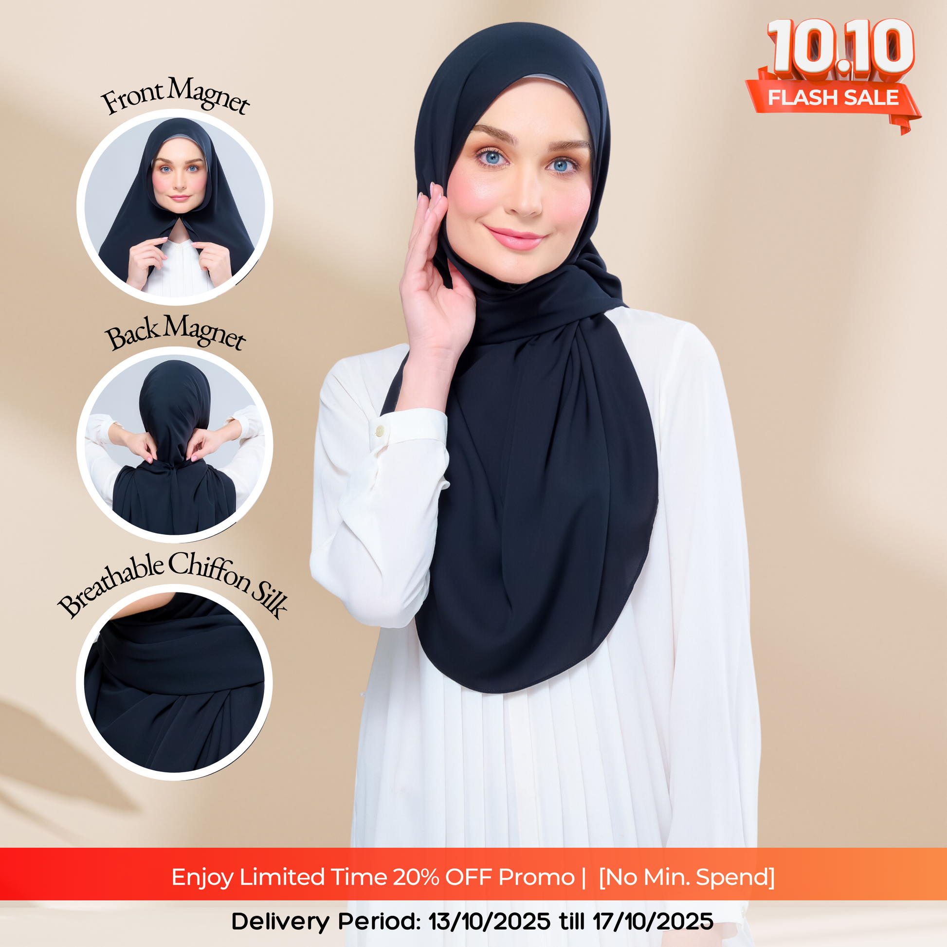 #GoPinless. Save your time for something better and Get Ready in Seconds with our Tag n' Go Collection. Your Favourite Shawl but better! Both Pairs of Magnets are adjustable to your face and body size for Full Coverage Styling.
