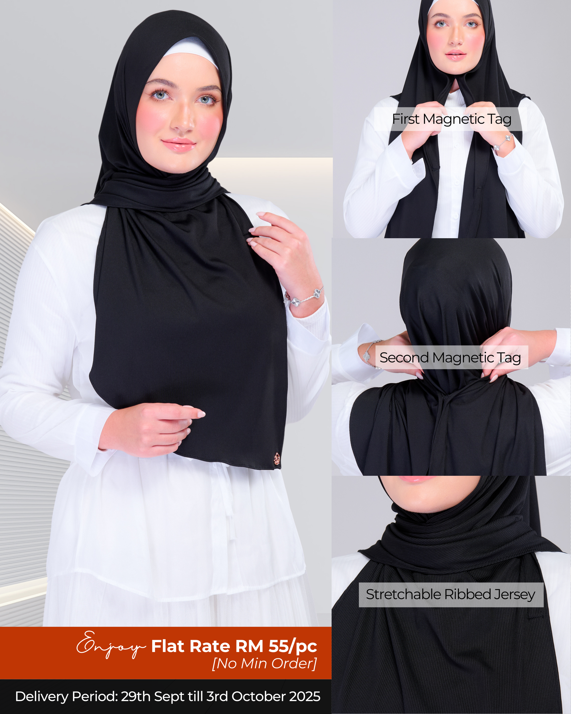 #GoPinless. Save your time for something better and Get Ready in Seconds with our Tag n' Go Collection. Introducing our new favourite Stretchable Ribbed Jersey but better! Both Pairs of Magnets are adjustable to your face and body size for Full Coverage Styling.