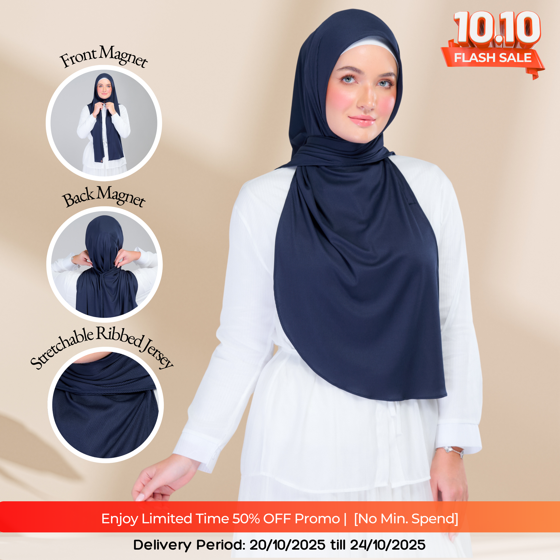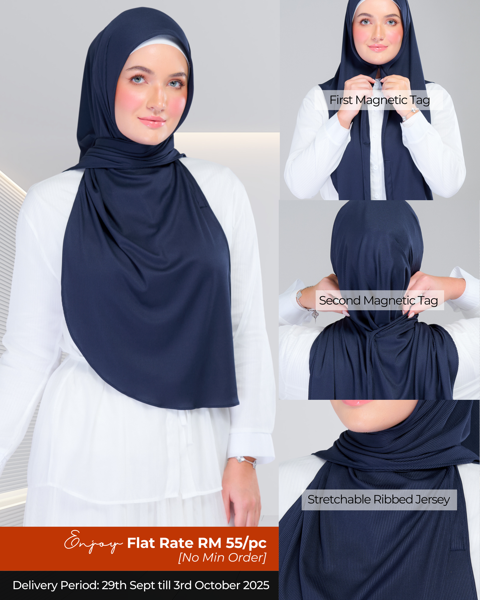 #GoPinless. Save your time for something better and Get Ready in Seconds with our Tag n' Go Collection. Introducing our new favourite Stretchable Ribbed Jersey but better! Both Pairs of Magnets are adjustable to your face and body size for Full Coverage Styling.