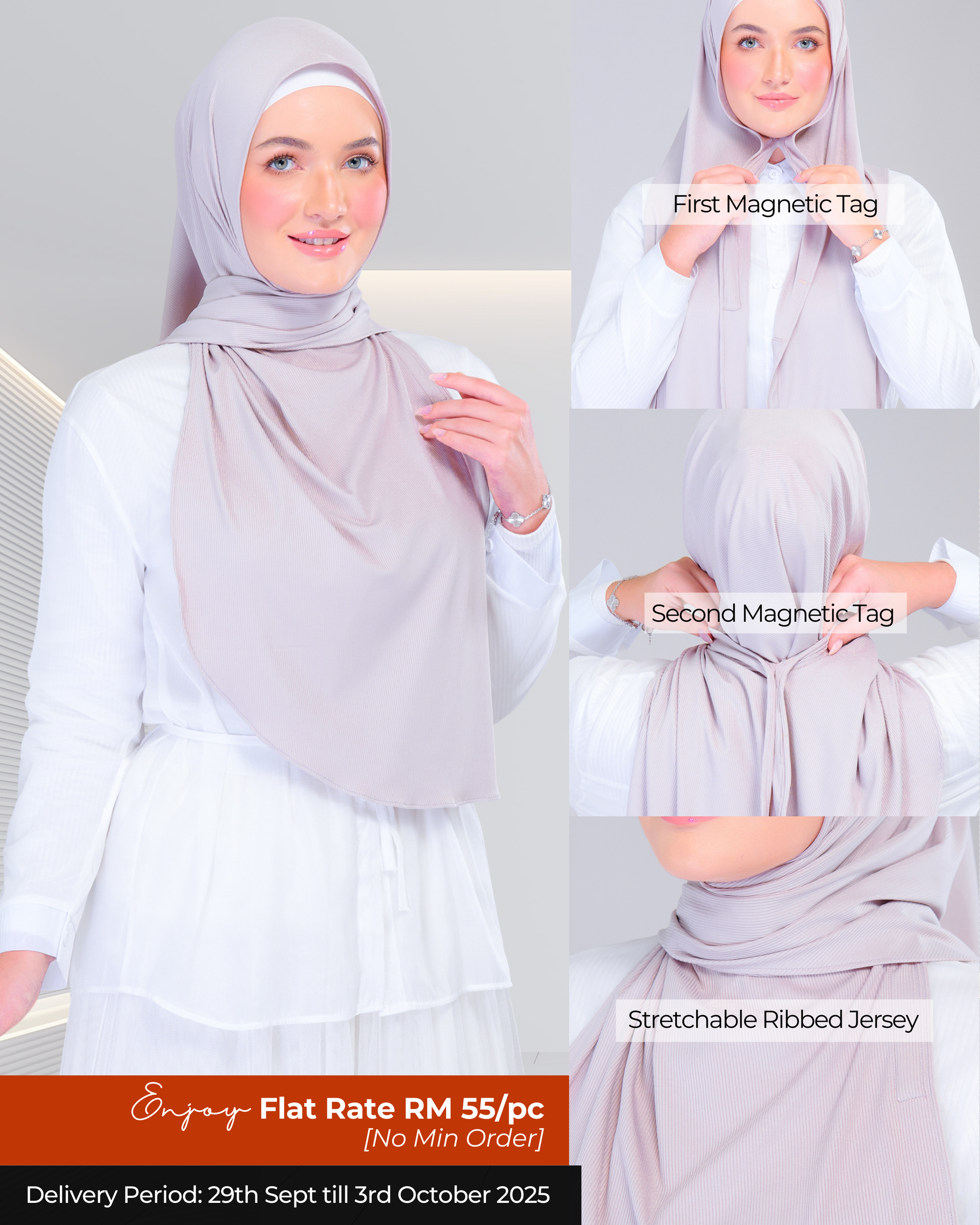 #GoPinless. Save your time for something better and Get Ready in Seconds with our Tag n' Go Collection. Introducing our new favourite Stretchable Ribbed Jersey but better! Both Pairs of Magnets are adjustable to your face and body size for Full Coverage Styling.