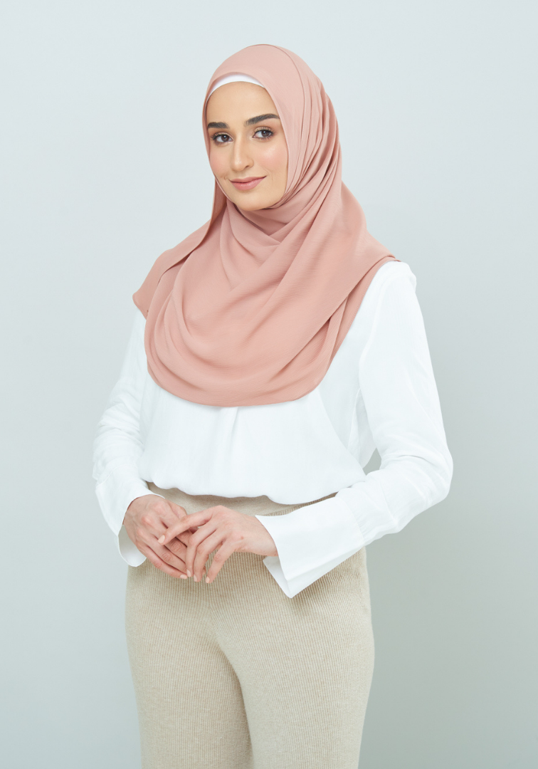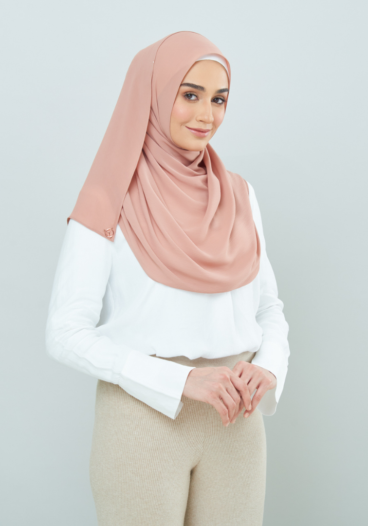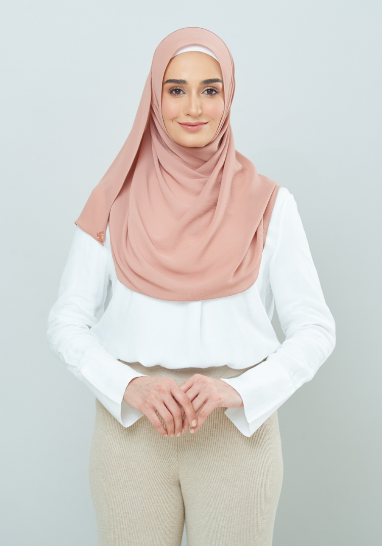 Semi-ironless and wrinkles resistant - the textured chiffon material needs no introduction. Tens of thousands of #SLBabes has witnessed the gracious just-one-glide to a perfect awning with this fabric. Save your time for something better and get ready in seconds with Semi-Instant Dolly! #NoMoreTudungTroubles